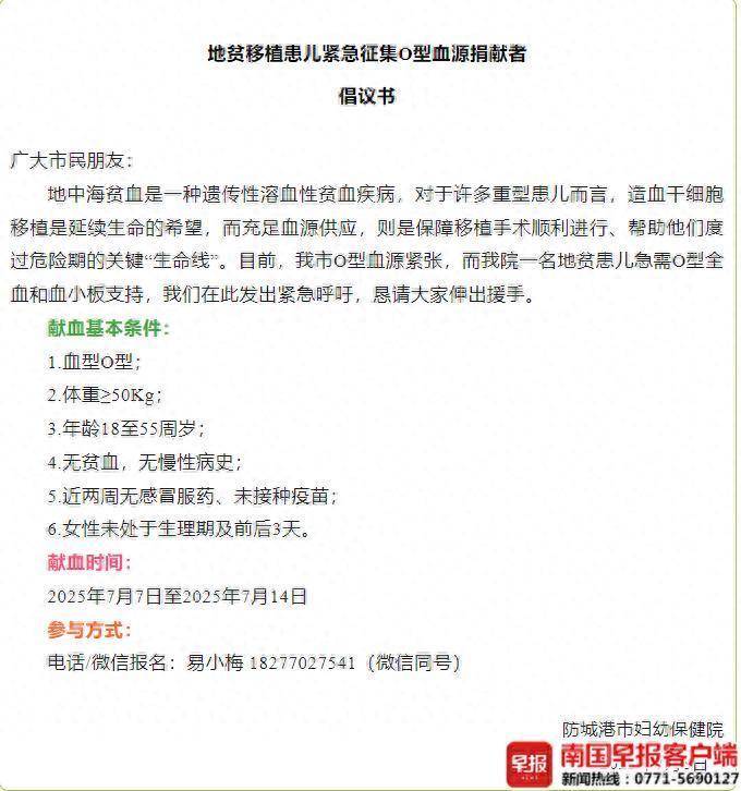 7月8日至9日配资炒股导航,一条为地贫患儿献血的倡议书在防城港市引发关注。发起倡议的是防城港市妇幼保健院,倡议书发布不到24小时,就有近百名爱心人士积极响应,数名热心市民成功献血。